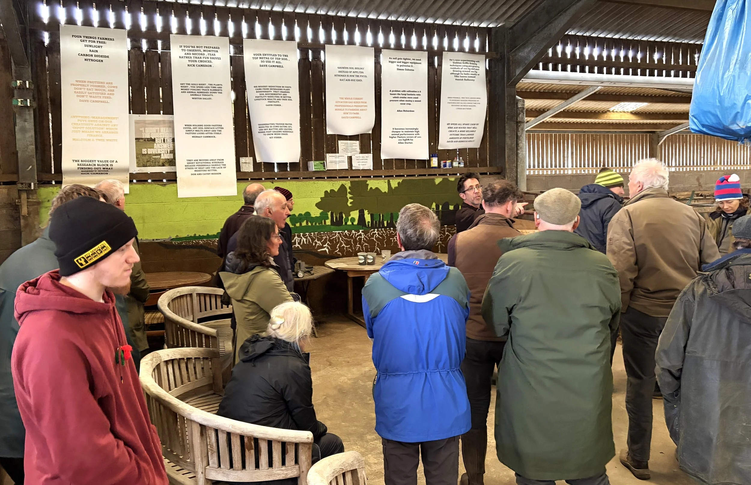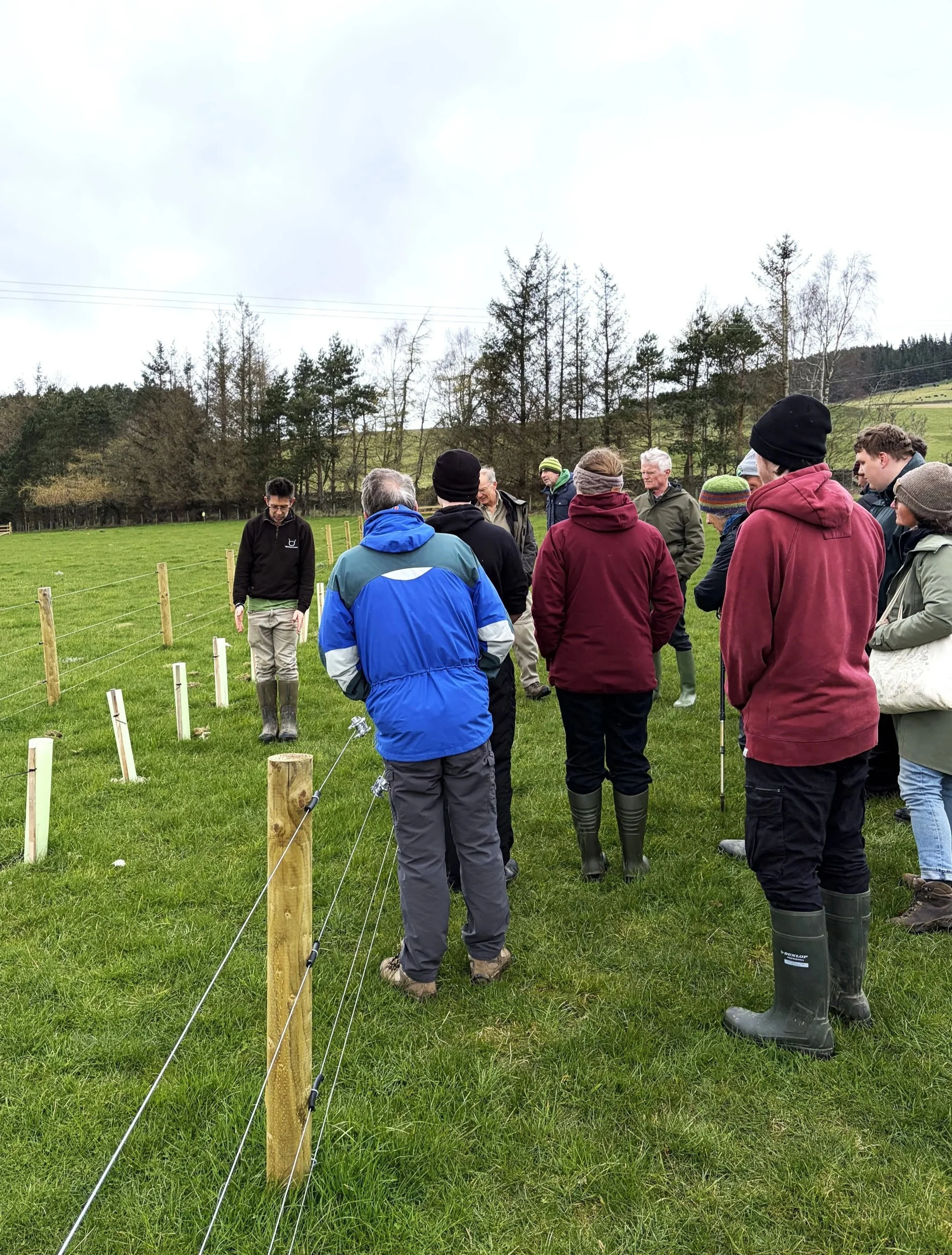 We spent time looking at the composting systems, using Johnson-Su bioreactor method mix, and how that’s been working in practice. There was also a look at the innovative agroforestry project, delivered in partnership with the Tweed Forum, which has seen over 1700 native trees planted at the farm. We learned how the trees are being integrated into the farm to reduce surface run off, improve water quality, enhance biodiversity whilst also providing livestock with shelter and forage.
